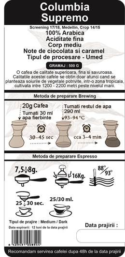 Cafea 100% Arabica, traditionala si proprie din Columbia de calitate superioara.